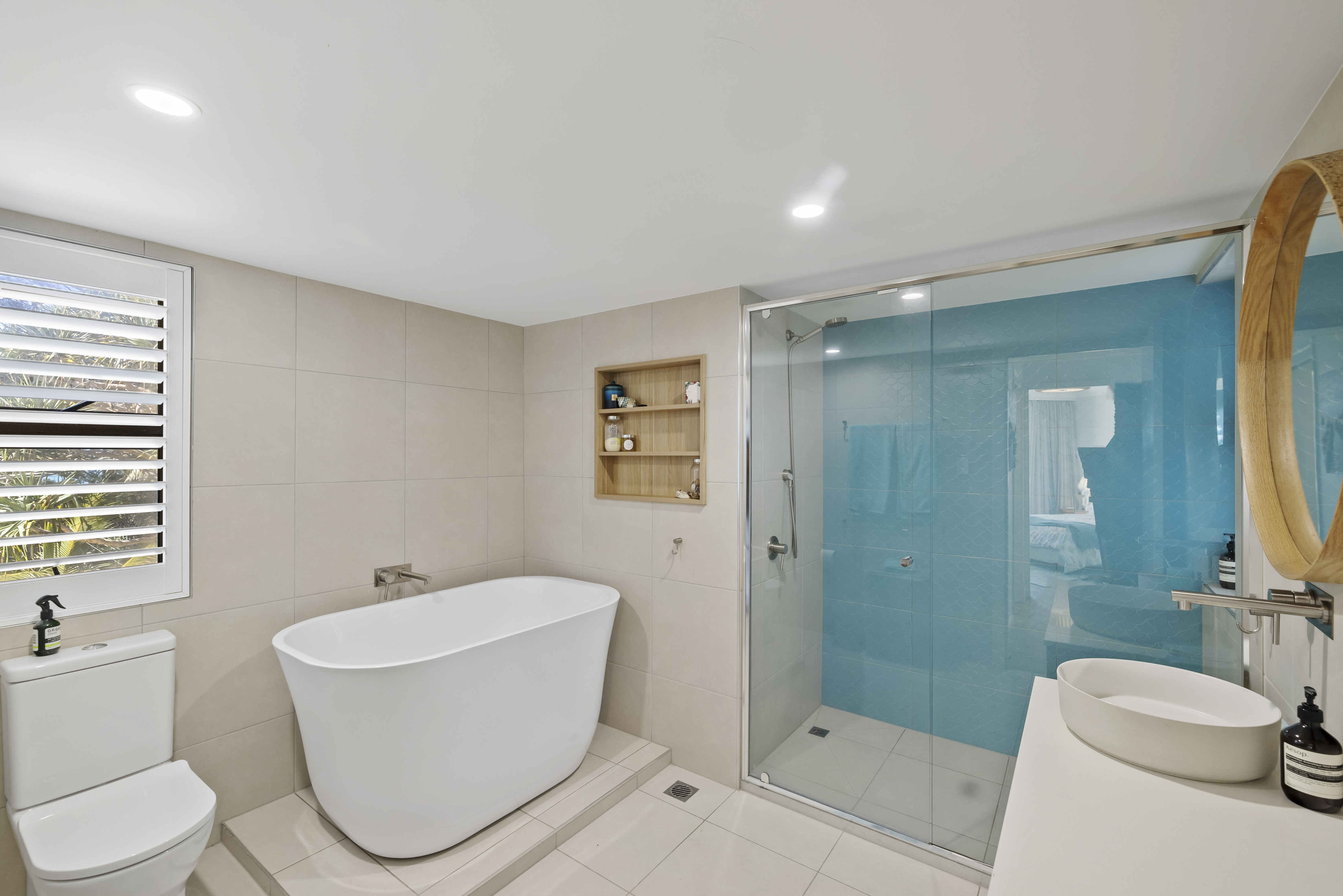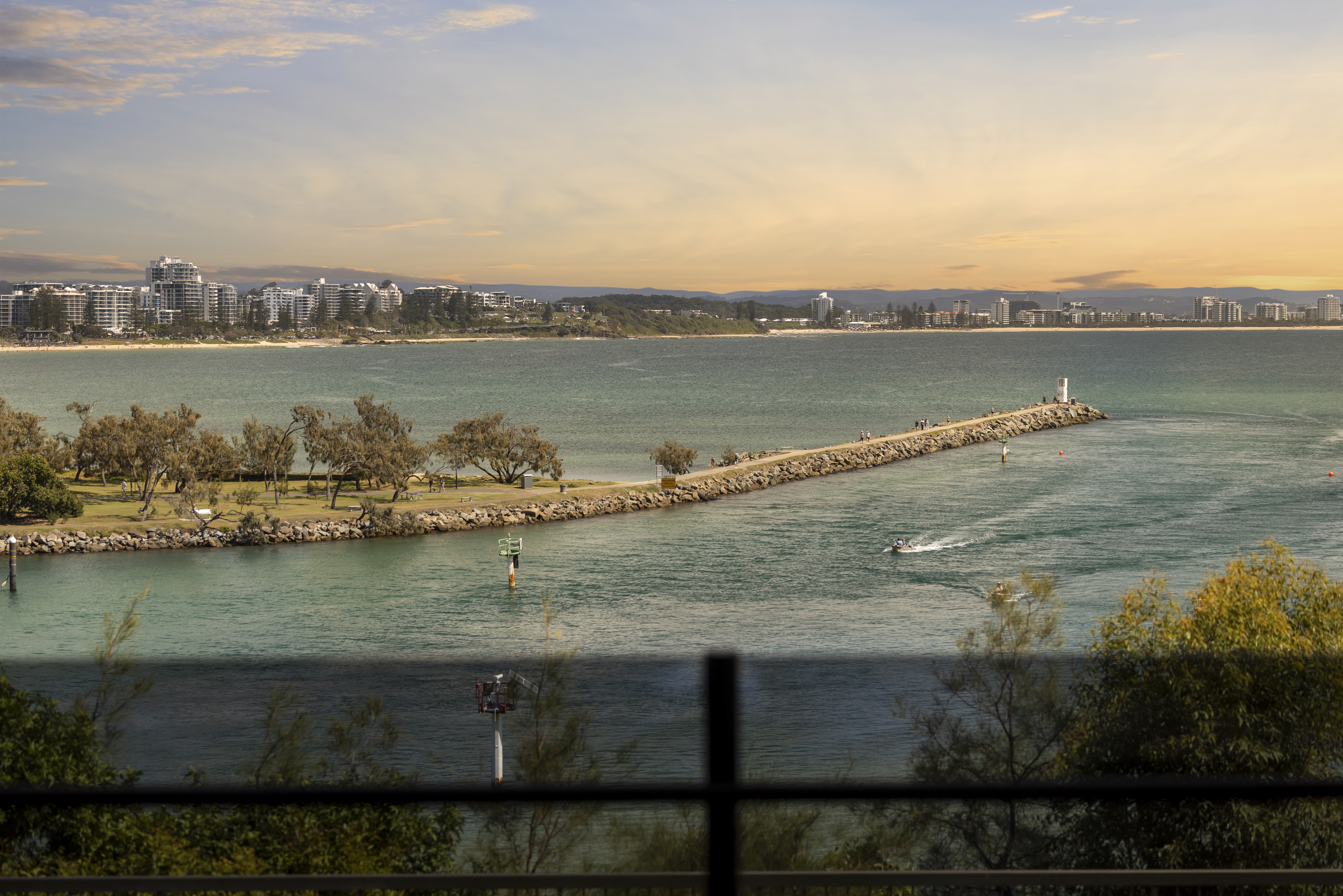 Step into a realm of unparalleled luxury in the expansive master bedroom, situated in the south-western corner of the unit. Designed to exceed the highest standards of comfort, you'll awaken to unobstructed views of the sun rising over the coastline and the Mooloolaba skyline. The luxurious ensuite rivals the finest spas, featuring a spacious walk-in shower, stone vanities, designer fixtures, and elegant backlighting-a true haven for relaxation and rejuvenation.